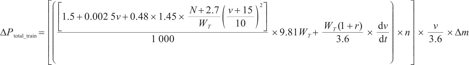 式(12)中:v代表当前运行速度;N为列车编组数;WT代表列车总重量;r代表列车回转系数;n为动车轴数;