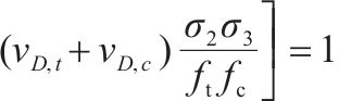 针对二轴应力状态,损伤比强度理论二轴形式的通用形式和简化形式见表2。表中c1~c4为经验系数,c1、c3和c4的取值与材料在单轴受拉损伤比