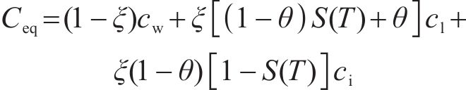 等效热容Ceq代表单位体积介质温度改变1 ℃所需要的热量,可表示为: