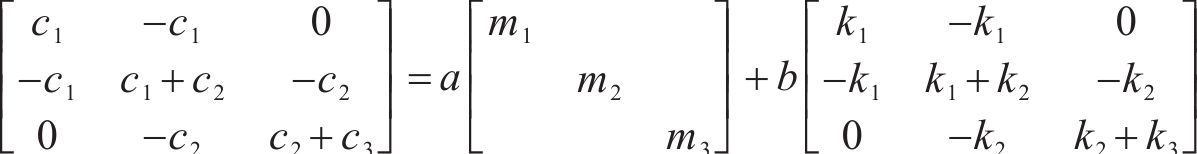 采用比例阻尼的简化方法,认为阻尼矩阵C与质量矩阵M和刚度矩阵K线性相关,即令:
