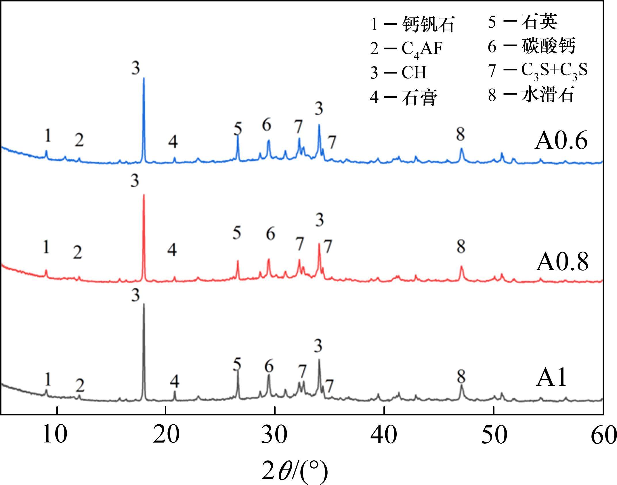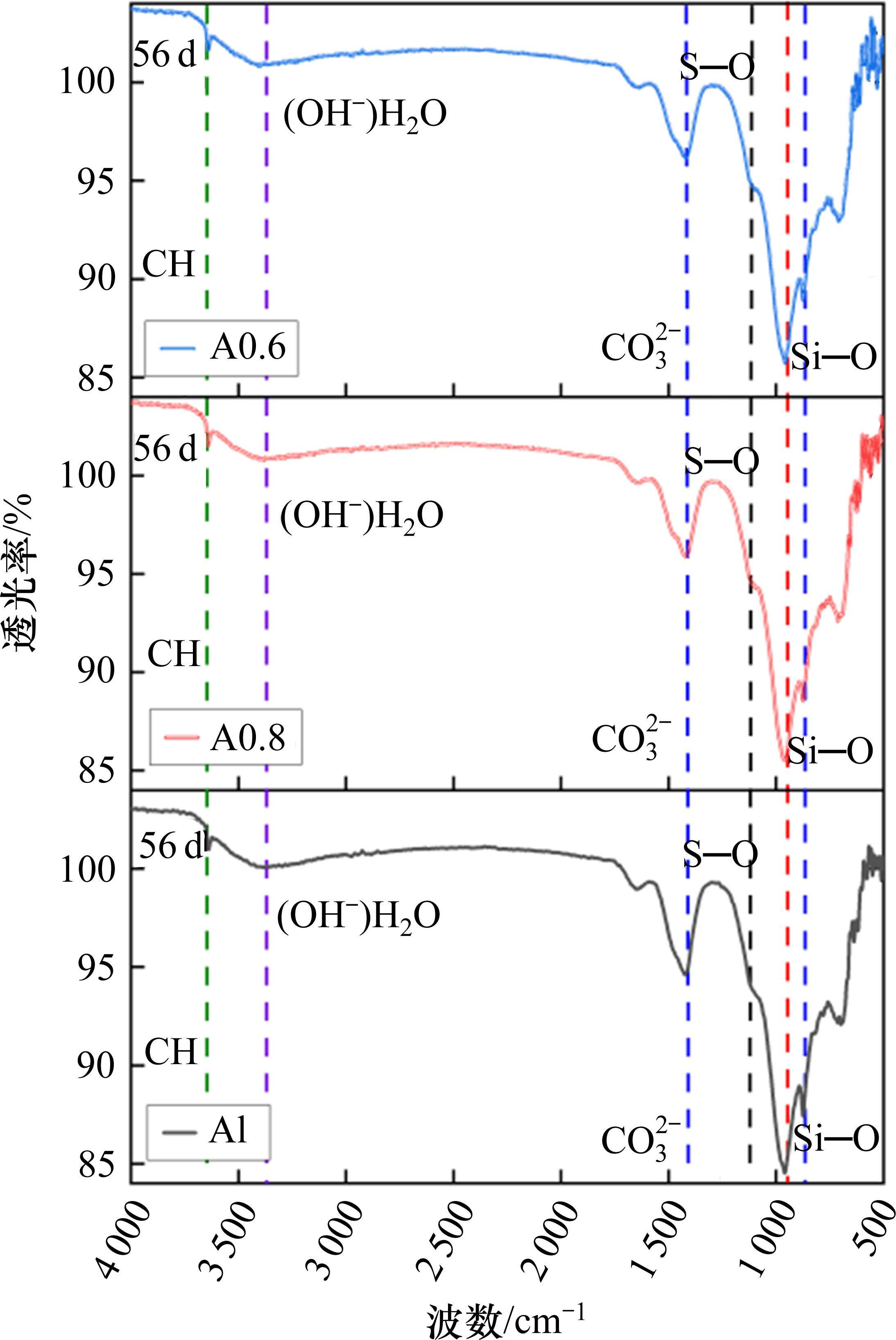从如图10所示的红外光谱曲线结果可知,与A1相比,A0.6和A0.8组水泥石的碳酸根