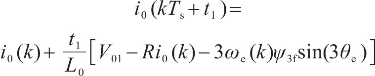 由式(17)确定dq轴2个最优矢量后,还需对零轴电流进行抑制。小矢量有2种不同的零轴电压,由式(2)~式(4)可知,kTs+t1和kTs+t1+t2时刻零轴电流为: