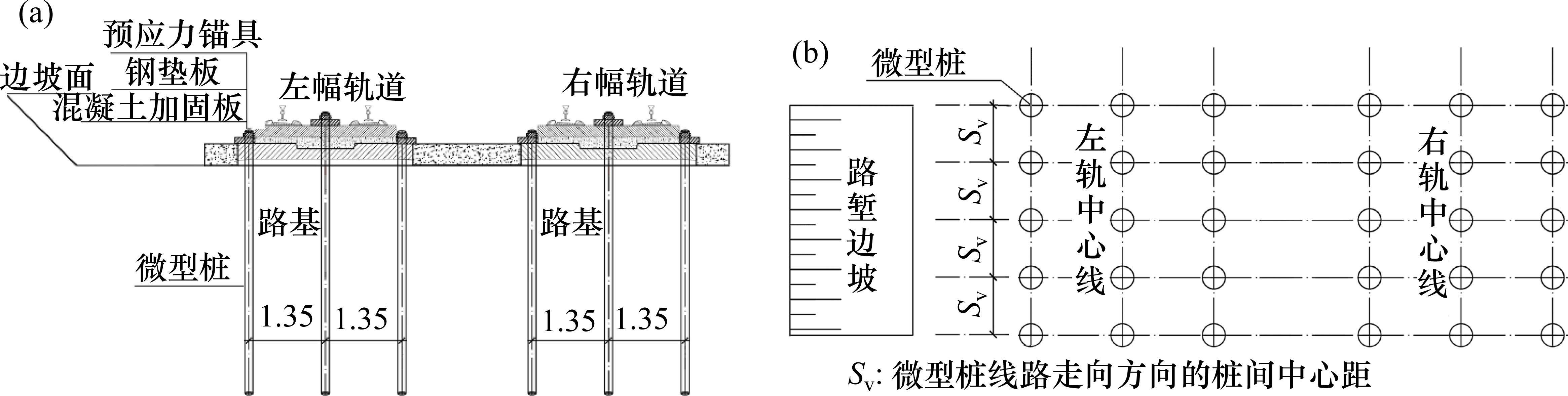 红层软岩路基经过预应力微型桩群桩处治后,治理效果显著。在轨道铺设完成并投入运行的阶段,试验段路基的上拱变形量被成功控制在4 mm以内。另外,从成本角度来看,当每排布置6根预应力桩,每根桩长为12 m,桩间中心距设定为5倍桩径时,双幅轨道每百米的造价约为130万元。相较于跨越式桩板结构,这种方法可节约2/3的成本。综上可知,对于轨道运行期间0~10 mm的低上拱等级情况,预应力微型桩是一种经济有效的调控红层软岩路基上拱变形的手段。