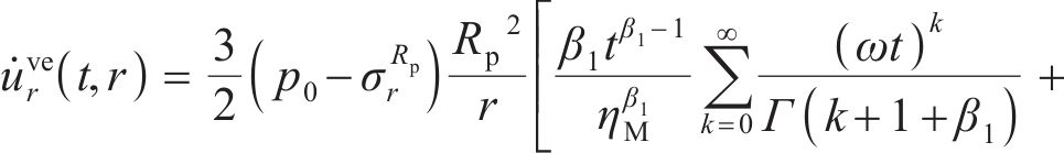 初始时刻黏弹性围岩的初态应力和位移采用经典Lame解答为: